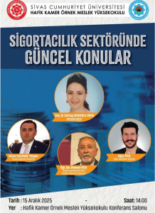 Doç. Dr. Sevtap SARIOĞLU UĞUR’ un Moderatörlüğünde gerçekleştirilen Panele Sivas Cumhuriyet Meslek Yüksek Okulu Emekli Öğretim Görevlisi Sayın Muhsin İPEK ve İpek Akademi Sigorta Yetkilisi Sayın Oğuz İPEK’ te panelist olarak katılmışlardır. 15 Aralık 2025 Tarihinde Sivas Cumhuriyet Üniversitesi Hafik Kamer Örnek Meslek Yüksekokulu Konferans Salonu’ nda düzenlenen panelde Yönetim Kurulu Üyemiz Sigorta Eksperi Sayın …