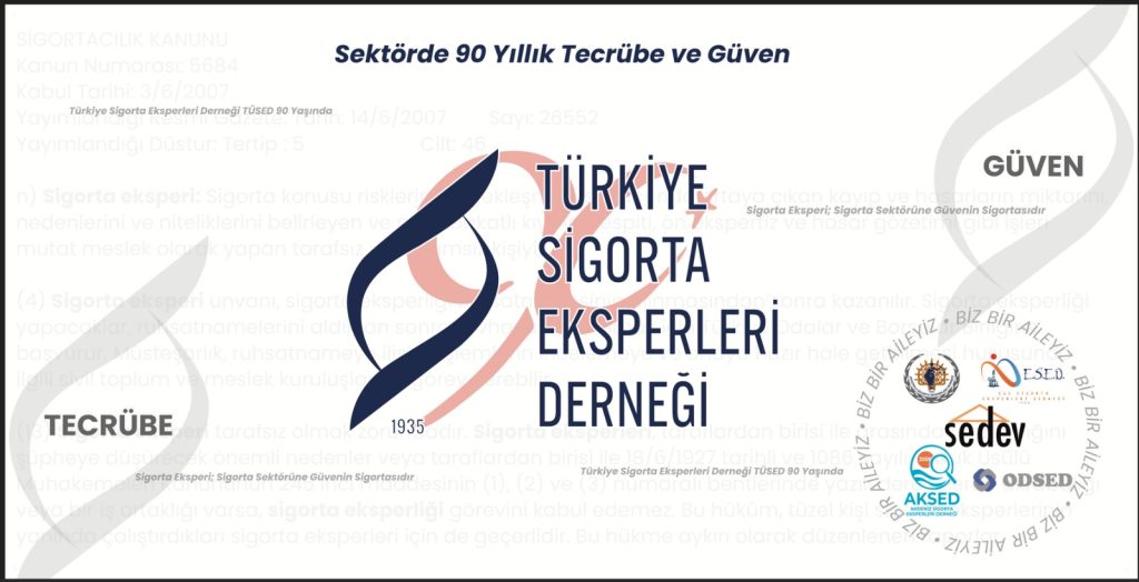 Türkiye Sigorta Eksperleri Derneği (TÜSED) 90 yıldır Türk Sigorta Sektörüne Güvenin Teminatı olarak tarafsız ve bağımsız şekilde başta SEİK olmak üzere Sigorta Eksperlik Mesleğinin tüm sivil toplum kuruluşları ile birlikte var gücü ile çalışmaya devam …