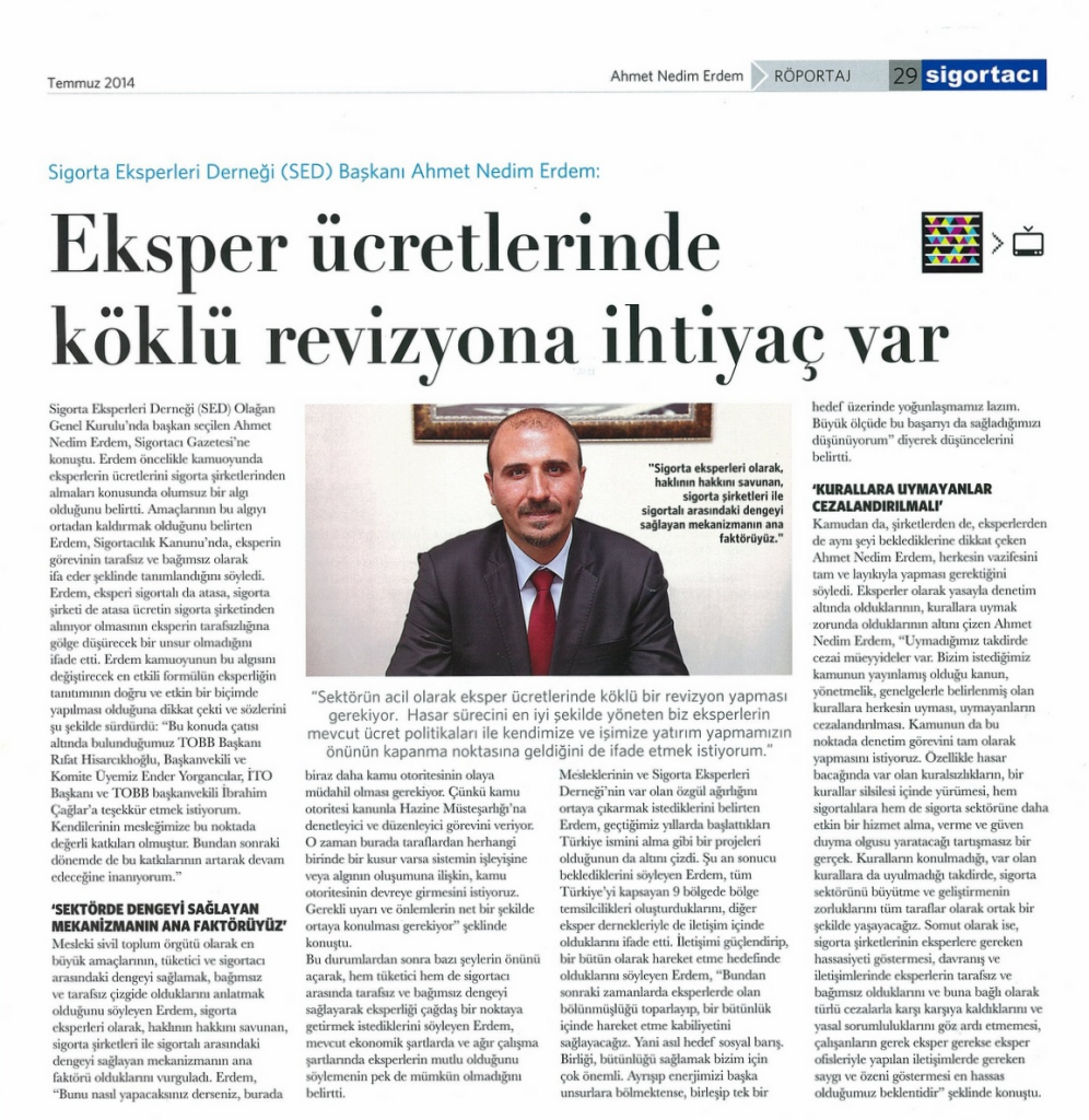 Dernek Başkanımız Sayın Ahmet Nedim ERDEM’in Sigortacı Gazetesi Röportajı