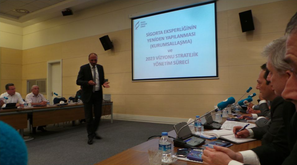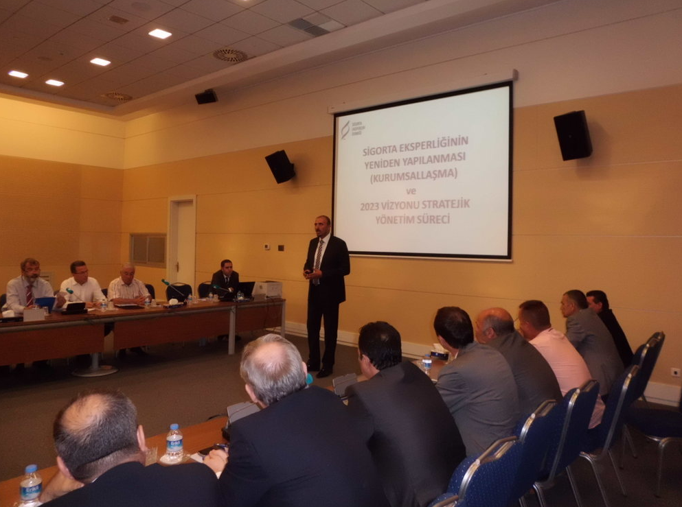 T.C.Başbakanlık Hazine Müsteşarlığı Sigortacılık Genel Müdürü Sayın Dr. Ahmet GENÇ, yasal çerçevede eksperlik mesleğinin sorunlarının çözümü ve sigortacılık sektörüne daha fazla katkı vermeleri için Sigortacılık Müdürlüğü olarak üzerlerine düşeni yapmaya hazır olduklarını, sigorta eksperlerinin sorunların çözümleri için projeler ve eylem planı önerileri sunmaları gerektiğini belirterek, Derneğimiz tarafından sunulan çalışmaları da olumlu bulduğunu belirterek, projenin devamı olarak, eksperlik mesleğinin sorunlarının çözümü için kısa ve uzun vadeli hedefler ile eylem planlarının belirlenmesi amaçlı çalışma başlatmış, bu çerçevede tüm katılımcılar söz almıştır.