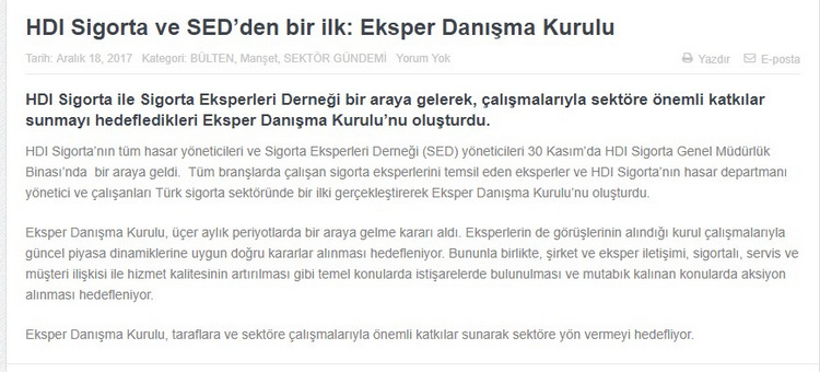 Best Dergisi; HDI Sigorta ve SED den Bir İlk Eksper Danışma Kurulu
