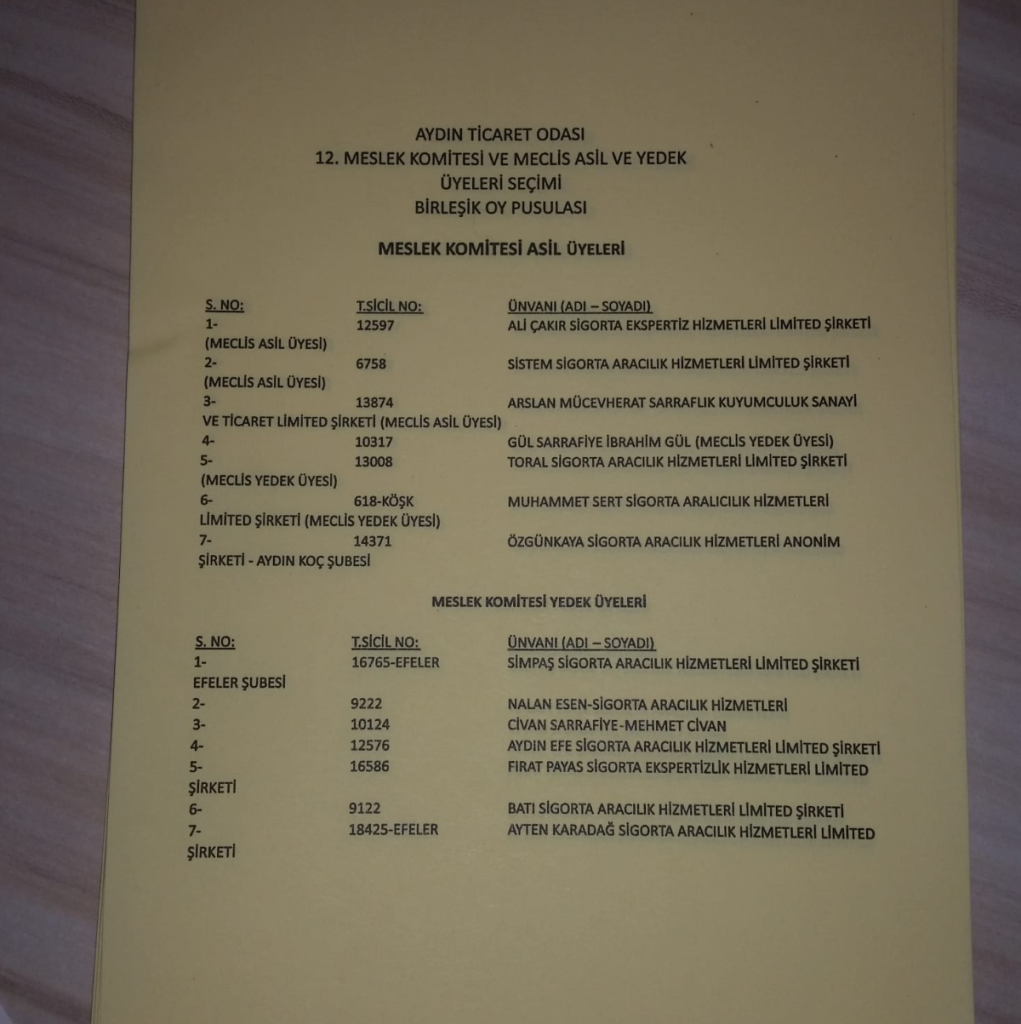 Aydın Ticaret Odası (AYTO) Meslek Komitesi ve Meclis Üyeliği Seçimlerinde Meclis Üyesi Olarak Seçilen Meslektaşlarımıza Başarılar Dileriz.