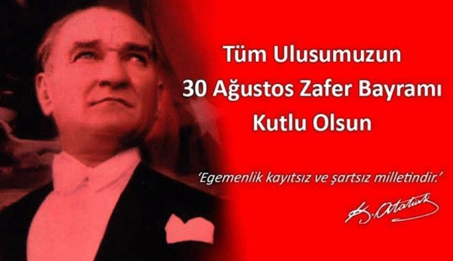 30 Ağustos Zafer Bayramımızı Kutlar, başta Gazi Mustafa Kemal Atatürk ve silah arkadaşları olmak üzere, eşsiz fedakarlıklarıyla milletimizin gönlünde ölümsüzleşerek bu vatanı bizlere miras bırakan tüm şehit ve gazilerimize rahmet, minnet, saygı ve şükranlarımızı sunarız.