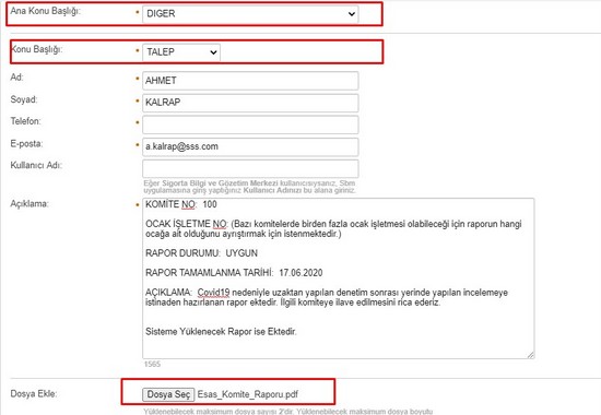 – İletişim formuna raporlar pdf formatında yüklenebilmektedir.