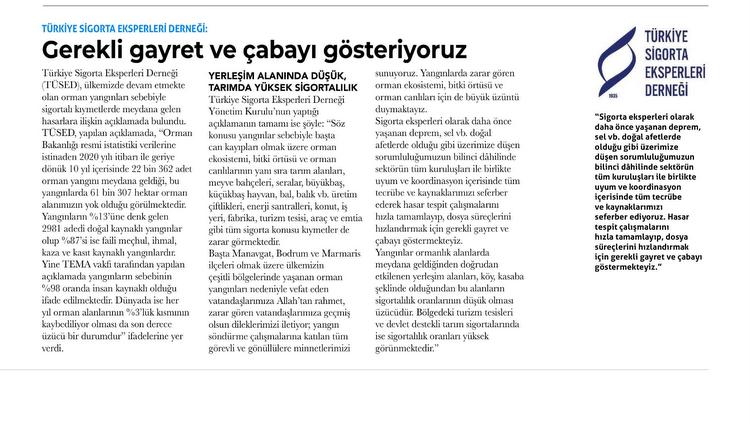 Sigorta Dünyası Dergisinde Yayınlanan Orman Yangınları ile İlgili Hasarların Tespitleri Hakkındaki Haberimiz