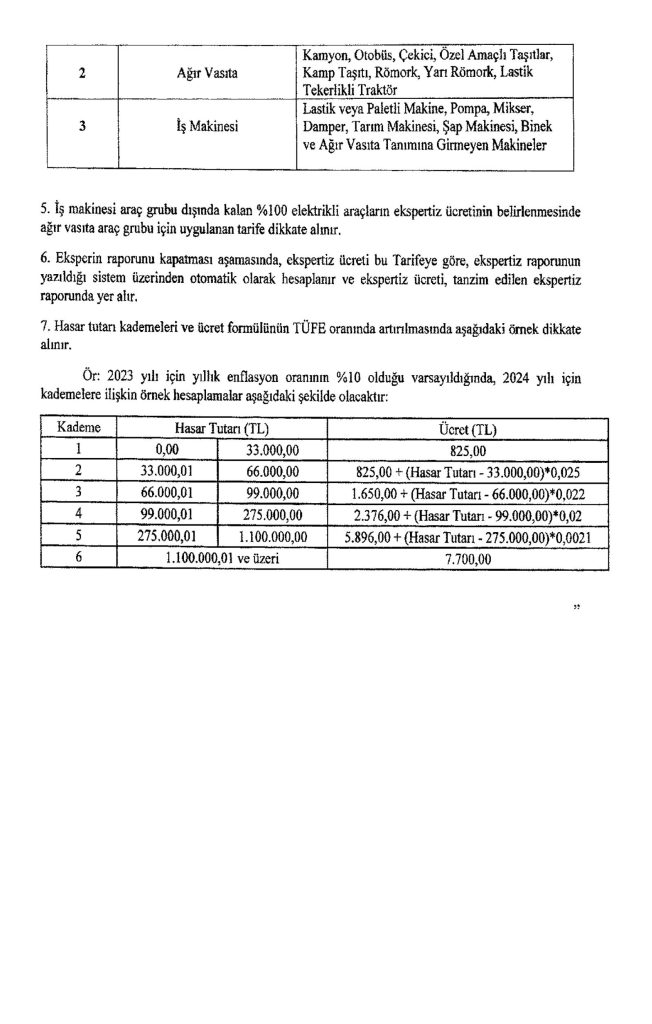 “(2) Taban Ekspertiz Ücret Tarifesi, her takvim yılı başında TÜİK tarafından belirlenen tüketici fiyatları endeksinde (bir önceki yılın aynı ayına göre değişim oranı) gerçekleşen artış oranında artırılarak uygulanır. Kurumca uygun görülmesi halinde söz konusu uygulama aylık değişim oranları dikkate alınarak altı aylık dönemler itibarıyla da yapılabilir.”