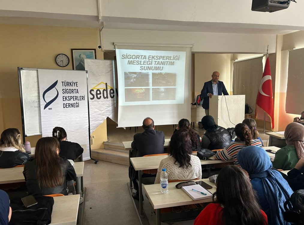 TOBB SEİK ve Türkiye Sigorta Eksperleri Derneği Yönetim Kurulu Üyemiz Sayın Adem İREN, Sigorta Eksperliği Mesleği Tanıtım sunumunu gerçekleştirerek eksperlik mesleğinin hukuki tanımı, Türk sigorta sektöründeki stratejik önemi, ekspertiz süreçleri, eksperlik mesleğinin yurt dışı uygulamaları ile ülkemizdeki durumunun karşılaştırılması, süreç yönetimi ve mesleğin geleceğinin planlanması gibi önemli konularda bilgiler verdi. Yine Türkiye Sigorta Eksperleri Derneği Sicil Kurulu Üyemiz Sayın Selahattin Eyüp ŞİMŞİR gelen soruları da cevaplandırarak, geleceğin sigortacılarına hem sektör hem de eksperlik mesleği ile ilgili bilgilerini aktardılar.