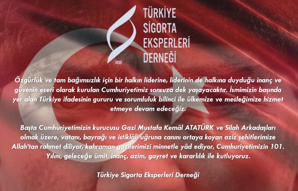 Özgürlük ve tam bağımsızlık için bir halkın liderine, liderinin de halkına duyduğu inanç ve güvenin eseri olarak kurulan Cumhuriyetimiz sonsuza dek yaşayacaktır. İsmimizin başında yer alan Türkiye ifadesinin gururu ve sorumluluk bilinci ile ülkemize ve mesleğimize hizmet etmeye devam edeceğiz.