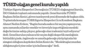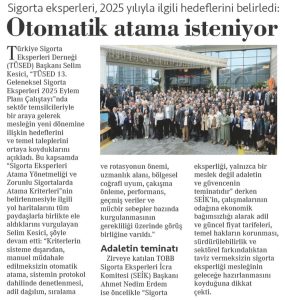 Hürriyet Gazetesi Web Sayfasında Yayımlanan TÜSED 14. Geleneksel Sigorta Eksperleri 2026 Eylem Çalıştayı ile İlgili Haberi