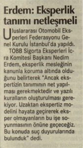 SEİK Başkanı Sn.Ahmet Nedim ERDEM’in Eksperlere Hitaben Sigorta Haftası Mesajı İle İlgili Sigorta Haber Web Sayfasında Yayımlanan Haberi