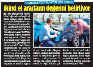 İkinci el alırken dikkat Türkiye Sigorta Eksperleri Derneği, ikinci el otomobil satın alacak tüketicileri aydınlatacak önemli açıklamalarda bulundu. Kaza geçmişi olan otomobilleri değerinden daha yüksek fiyata satmak adına sıklıkla başvurulan hile ve yalanlara açıklık getiren TÜSED Başkanı Ahmet Nedim Erdem, “Karşı tarafın hasarı TRAMER’e yansıtılmış, sigorta şişirmesi hasar kaydı mevcut, hasar kaydı var ancak tutar …