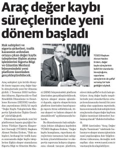 İstanbul.03.08.2022Sayı : 2022/105 Sayın Üyemiz, TOBB Sigortacılık Müdürlüğü tarafından yayınlanan, “Değer Kaybı Atamaları” hakkında önemli duyuru aşağıda bilgilerinize sunulmuştur. Saygılarımızla. Türkiye Sigorta Eksperleri Derneği Yönetim Kurulu Sayın Sigorta Eksperi, Bilindiği üzere, 21.04.2022 tarihli ve 2022/12 sayılı Değer Kaybı Taleplerinde Ekspertiz İşlemlerine İlişkin Genelgenin 8 inci maddesi altıncı fıkrası “Eksperin raporunu, mazeretsiz …
